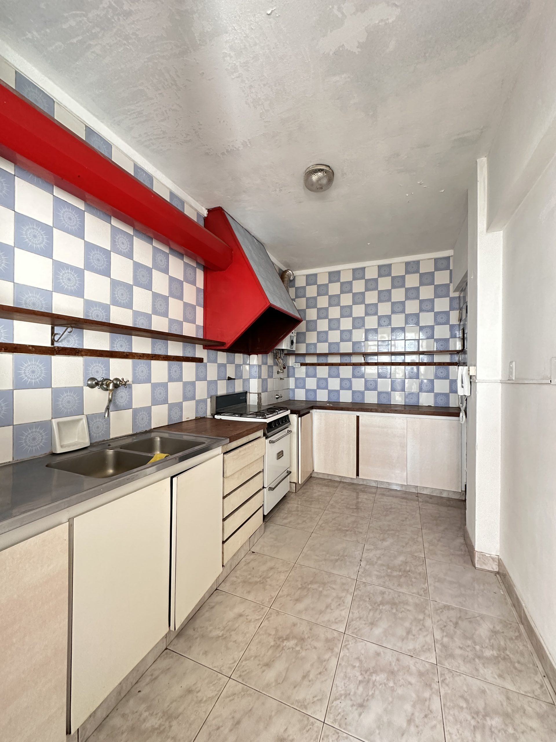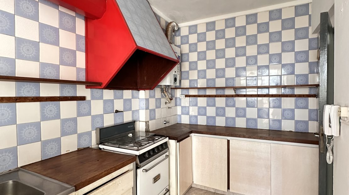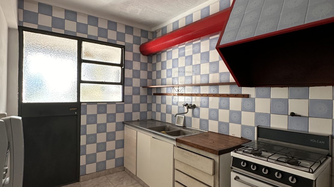 Departamento ubicado en 116 y diagonal 80 en un tercer piso, cuenta con living-comedor, cocina independiente amplia con muebles bajo y sobre mesada, y lavadero incorporado en sector de balcón cerrado (tipo jardín de invierno).